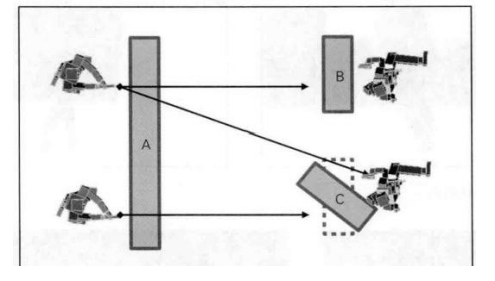 如图所示,A掩体与平行的B掩体优势相等,但C掩体就无法阻挡从A掩体后发出的某些角度的攻击。
