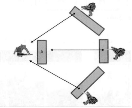 另外,将多个障碍物以不同角度摆放时,其朝向的交叉点很容易成为火力集中处。在单人游戏中,A点将成为最危险的位置。而在联机游戏时,可以让玩家们制定战术将敌人引至A点。